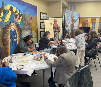 A group of adults and young children had a unique experience during this Paint and Sip Event with our very own Sydnei Smith Jordan. They had the opportunity to work directly with her in this workshop and share the JOY in painting 'Two Pound Weight' Tubman! Everyone had fun and did a fantastic job!